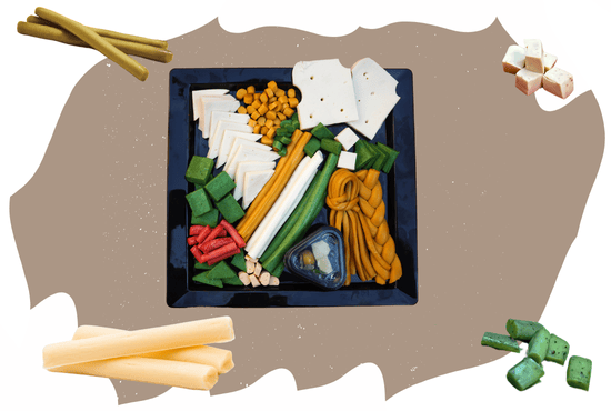 Complete Appetizer Platter with Pooneh Paneer Pencil Cheese; a healthy and delicious choice for entertaining your esteemed guests